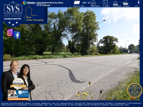 Raison sociale : SVS ALSACE IMMOBILIER - Siège social : 4 rue Contades - Schiltigheim 67300 – France – Antennes à Châtenois, Geudertheim, Val d’Argent, Val de Villé, Vosges, Mulhouse (Illzach), Colmar - RCS : Strasbourg B 908 655 137 - Forme sociale : EURL - Numéro TVA Intracommunautaire : FR31908655137 - Carte professionnelle T n° CPI67012022000000004 Préfecture de délivrance de la carte professionnelle : CCI de Alsace Eurométropole Capital : 1000 € - Caisse garantie financière : ACM IARD 4 Rue FREDERIC GUILLAUME RAIFFEISEN 67000 STRASBOURG - Montant garantie financière : 30000 €